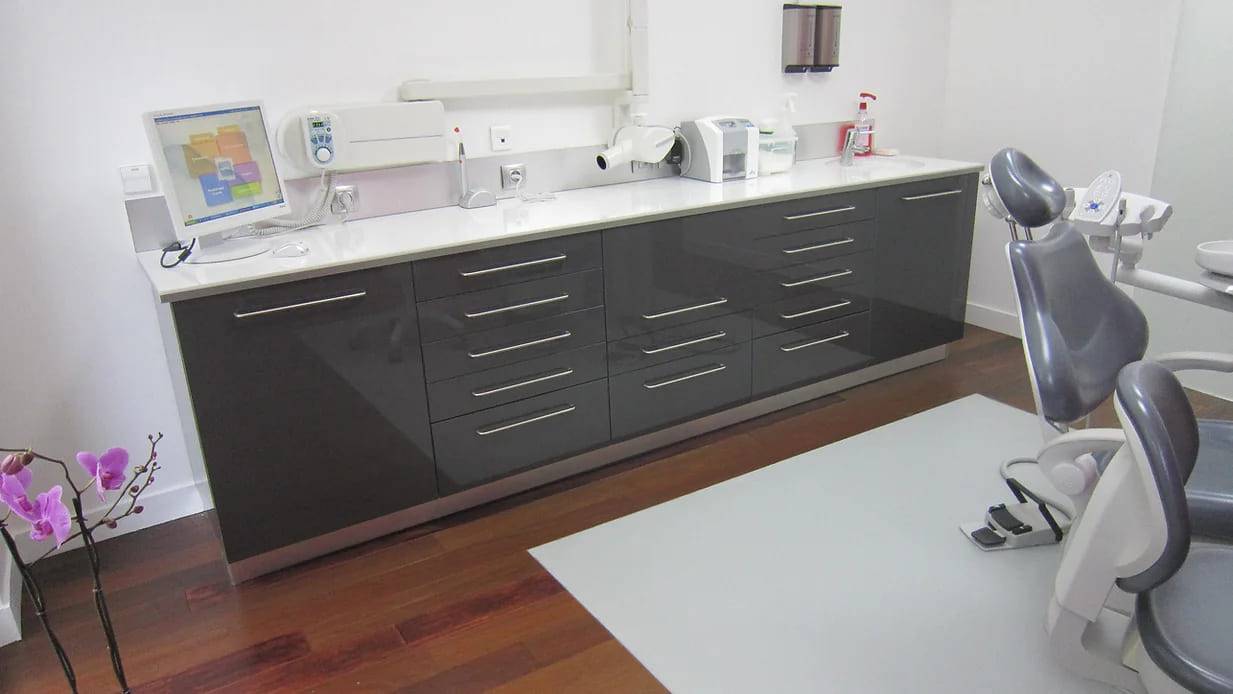 Nous nous occupons également de penser et d’agencer les espaces de travail, autre que les salles de soins ou de stérilisation, comme les bureaux ou les banques d’accueil et toujours dans un soin particulier apporté dans les moindres détails. La conception de meubles dentaires fait partie de nos atouts.