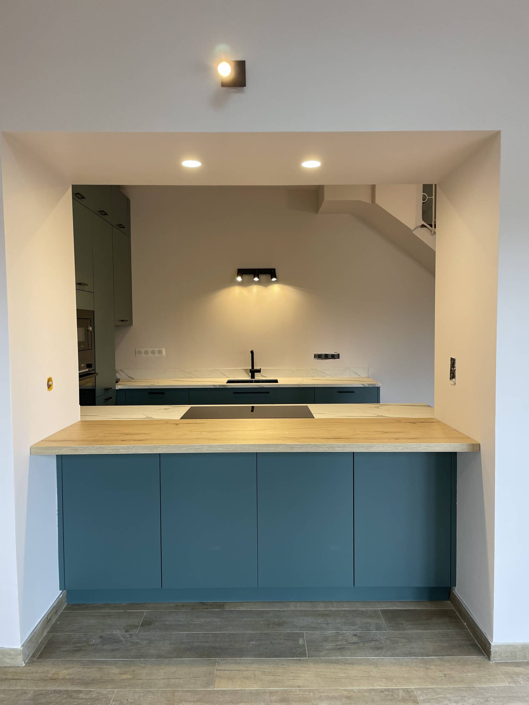 Nos clients ont complètement réaménagé leur intérieur avec de gros travaux. Nous somme intervenus pour leur trouver le meilleur agencement de cuisine sur-mesure possible en fonction de l’espace disponible.